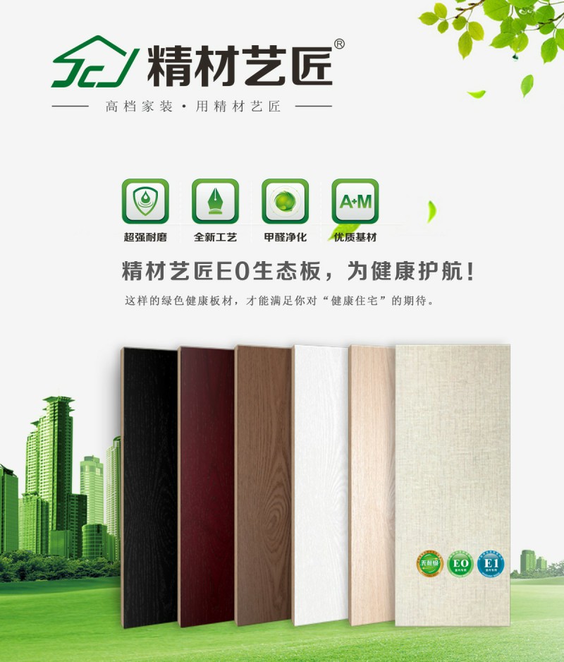 精材藝匠家裝木板:凈醛生態(tài)板、竹香科立板、多層實木板、高光鈦瓷板、阻燃板、石膏板等多個類別產(chǎn)品。