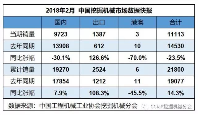 通過數(shù)據(jù)不難看出,2018年前兩月挖掘機仍舊實現(xiàn)了14.3%的增長,只是增長幅度較小,整體銷量表現(xiàn)一般。