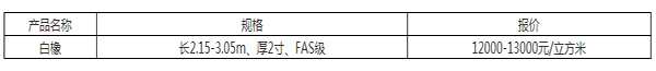 以白橡為例,近段時間白橡的市場無利好表現(xiàn),雖然受到關稅上漲的影響導致白橡的進口成本出現(xiàn)上升,但在終端銷售市場,白橡的價格卻難以有效上升,整體維持平穩(wěn)。有商家表示,一方面白橡的市場庫存量相對較多,雖然關稅上漲了,但是經(jīng)銷商賣的大多是舊庫存;另一方面下游市場需求不振,白橡自然難以賣得起價格。目前廣東市場白橡長2.15-3.05m、厚2寸、FAS級報價12000-13000元/立方米。